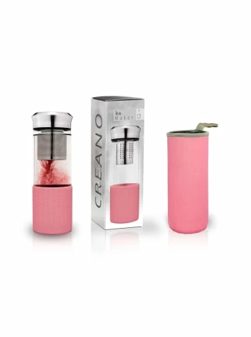 – 3 delikate Teemischungen: Erdbeer-Minze, Exotische Früchte, Sanfte Limette. Geeignet auch als EisTees!Kombiniert mit einer edlen Auswahl an Teamakern.Herkömmliche Thermoskannen sind langweilig! Trinke Tee auch unterwegs mit Stil.– Die bunte Neoprenhülle sorgt für den extra Thermoeffekt. – Befülle ihn mit losem Tee, Kräuter- oder Früchtetee. – Verwende ihn auch als Fruit-Infuser und fülle das Sieb mit frischem Obst oder Ingwer. – Der Teezubereiter ist mit einem robusten Edelstahlsieb und –deckel versehen.– Durch das feinporige Edelstahlsieb werden auch kleine Teeblätter zuverlässig herausgefiltert.– Trinke direkt aus dem Teamaker oder fülle den Tee in eine Tasse. Der Silikonfuß sorgt für sicheren Stand. – Fest geschlossen hält der Teamaker 100 % dicht – ideal für die Handtasche oder den Rucksack.Produktdetails Teamaker:– Lieferumfang Teamaker: 1 Teamaker mit Edelstahlsieb & -deckel, Silikonfuß, Neoprenhülle, Fassungsvermögen 400 ml– Das Glas ist spülmaschinenfest.– Robustes Edelstahlsieb und -deckel – Im fest geschlossenen Zustand ist der Teamaker zu 100 % dicht.– Glasöffnung mit ca. 5,5 cm DurchmesserTeemischungen: – Sanfte Limette 60g – Kräuter-Teemischung aus Früchten und Kräutern mit LimettengeschmackZUTATEN: Apfelstücke, Hagebuttenschalen, Zitrusscheiben, Zitrusschalen, Sonnenblumenblätter, Erbeerscheiben, Lemongras, Erdbeerstücke, Säuerungsmittel Zitronensäure, Aroma.– Exotische Früchte 60g – exotische Früchte-Teemischung mit fruchtig süßem GeschmackZUTATEN: Hibiskusblüten, Hagebutten, Ananasstücke (Ananas, Zucker, Säuerungsmittel: Zitronensäure), Mangostücke (Mango, Zucker, Säuerungsmittel: Zitronensäure), Karottenstücke, Mandarinenstücke (Mandarine, Rohrzucker, Säuerungsmittel Zitronensäure), Apfelecken, Kokos-Chips, Aroma, Erdbeerscheiben, Tee– Erdbeer Minze 60g ZUTATEN: Apfelstücke, weiße Bohnenschalen, Beerenblätter (Brombeerblätter, schwarze Johannisbeerblätter), Brennnesselblätter, Pfefferminze, Krauseminze, Erdbeerstücke, AromaMHD: mind. 12 MonateVerantwortlicher Lebensmittelunternehmer:Creano GmbHIn der Wanne 1D-31832 Springe