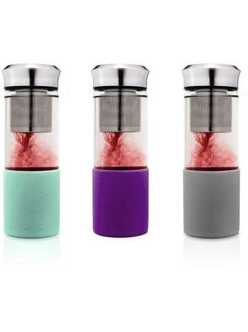 Herkömmliche Thermoskannen sind langweilig! Trinke Tee auch unterwegs mit Stil.– Die bunte Neoprenhülle sorgt für den extra Thermoeffekt. – befülle ihn mit losem Tee, Kräuter- oder Früchtetee. – Verwende ihn auch als Fruit-Infuser und fülle das Sieb mit frischem Obst oder Ingwer. – Der Teezubereiter ist mit einem robusten Edelstahlsieb und -deckel versehen.– Durch das feinporige Edelstahlsieb werden auch kleine Teeblätter zuverlässig herausgefiltert.– Trinke direkt aus dem Teamaker oder fülle den Tee in eine Tasse. Der Silikonfuß sorgt für sicheren Stand. – Fest geschlossen hält der Teamaker 100 % dicht – ideal für die Handtasche oder den Rucksack.Produktdetails Teamaker:– Lieferumfang Teamaker: 1 Teamaker mit Edelstahlsieb & -deckel, Silikonfuß, Neoprenhülle, Fassungsvermögen 400 ml– Das Glas ist spülmaschinenfest.– Robustes Edelstahlsieb und -deckel – Im fest geschlossenen Zustand ist der Teamaker zu 100 % dicht.– Glasöffnung mit ca. 5,5 cm Durchmesser