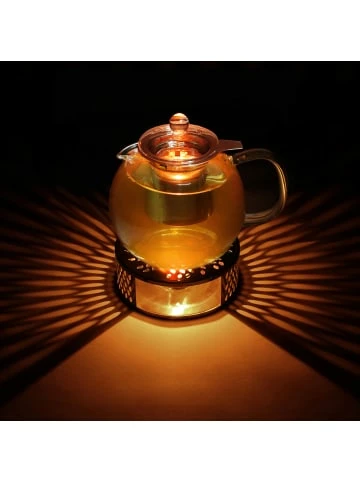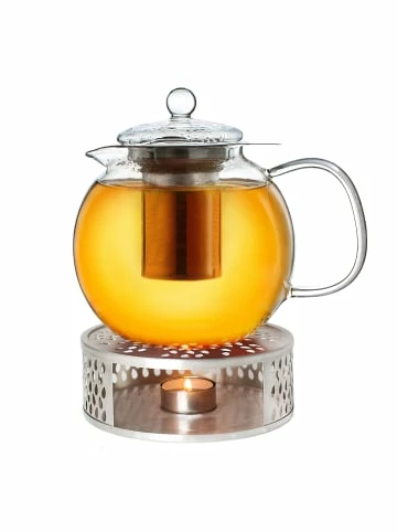 Set aus 1x Teekanne 1.7l „Schnabel“ mit feinporigem Edelstahlsieb und 1x Edelstahl-Stövchen 15.5 x 15.5 x 5.8 cm1 x Stövchen aus Edelstahl15.5 x 15.5 x 5.8 cmEIGENSCHAFTEN:· zum Warmhalten von Heißgetränken aller Art· gefertigt aus rostfreiem Edelstahl · inkl. herausnehmbarem Einsatz für Teelicht· geeignet für alle gängigen Teekannengrößen· Design erzeugt optisch anmutende Lichteffekte· leicht zu reinigen, geeignet für Geschirrspülmaschine1x Teekanne 1.7l „Schnabel“:ANGEBOT: Die Glaskanne mit Deckel und Edelstahlsieb im zeitlosen Design fasst 1.3l, das entspricht ca. 7 Tassen. Der Teebereiter ist ideal für die Zubereitung von losem Tee, Kräutertee, Früchtetee, Teebeutel, Teeblumen aber auch für Kaffee, Eistee, Säfte und Schorlen geeignet. Geliefert wird in einen hochwertigen Geschenkkarton.BESONDERHEITEN: Durch das robuste und hitzebeständige Borosilikatglas kann die Teekanne relativ dünnwandig produziert werden und hat trotzdem eine sehr hohe Stoß- & Kratzfestigkeit. Der Vorteil: die Tee-Kanne ist leicht und filigran. Das extra feine Sieb, hält selbst feinste Teepartikel zurück, somit befinden keine lästigen Schwebstoffe im Getränk. Vorsicht beim Umgang mit kochendem Wasser, Kinder sind unbedingt fern zu halten.Die Glasteekanne und der Siebeinsatz sind 100% spülmaschinenfest, frei von Chemikalien und absolut geschmacksneutral. Perfekt für einen sorglosen & puren Tee-Genuss.100% TROPFFREI: Der Ausgießer besitzt innen eine extra Vertiefung und außen eine kleine Nase die jeden Tropfen zurück hält und die Teekanne damit 100% tropffrei macht. Achtung: Da es sich um einen Glasartikel handelt, seien Sie bitte bei der Reinigung vorsichtig.