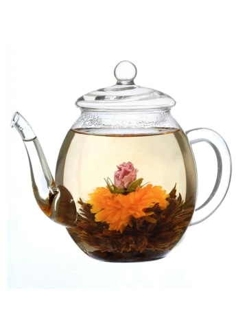 Faszination „Erblühtee“Der ErblühTee von Creano bietet dem Genießenden ein außergewöhnliches Erlebnis: Im Innern der Kugel befindet sich eine kunstvoll eingebundene exotische Blüte. Ihr Geheimnis entfaltet die Kugel aber erst, wenn sie in ein Gefäß mit kochend heißem Wasser gegeben wird. Sie beginnt sich langsam zu öffnen und bringt am Ende der Aufgussinszenierung die eingebettete Blüte hervor, die formenreich und farbenprächtig aus ihr emporsteigt.Schwarzer Tee – FrühjahrsleseDer ErblühTee besteht aus feinem Schwarzen Tee (Bai Hao Yin Zhen, Silver Needle fermentiert) aus den hohen Bergregionen der Provinz Fujian in China. Außergewöhnlich bei diesem Schwarztee ist, dass nur die hochwertigen Teeblattknospen Verwendung finden, die in einem schonenden Fermentationsverfahren zu diesem exklusiven Schwarztee veredelt werden.Die begehrte „erste Pflückung“ des Schwarzen Tees ist die hochwertigste Lese im Jahr. Sie erfolgt zu Frühlingsbeginn und ist besonders in Qualität und Geschmack.Das Geschmackserlebnis:Geschmacklich ist dieser Schwarze Tee ungewöhnlich lieblich mild. Er verträgt außergewöhnlich lange Ziehzeiten ohne zu verbittern und überzeugt durch seinen vollmundigen aromatischen Geschmack. Die unterschiedlich kunstvoll eingearbeiteten Blüten des ErblühTees geben dem Tee eine zusätzliche individuelle Geschmacksnote.Die Zubereitung:Schritt 1: Wasser aufkochen und unverzüglich in die Glaskanne geben. Bitte beachten: Im Gegensatz zur Grünteezubereitung ist hier die Verwendung von kochend heißem Wasser notwendig, um eine optimale Öffnung der ErblühTee-Kugel zu gewährleisten.Schritt 2: ErblühTee-Kugel vorsichtig ins Wasser geben und staunenSchritt 3: Bitte die empfohlene Mindestziehdauer beachten. Dieser hochwertige Schwarztee verträgt lange Ziehzeiten ohne zu verbittern.Die Sorten / Variationen:Rote Affäre (Silver Needle fermentiert mit Blüten der Rose (Damascena) & Jasmin)Purple Shine (Silver Needle fermentiert mit Blüten der Ringelblume & Rose (Damascena)Vulkangeflüster (Silver Needle fermentiert mit Blüten der Rose (Centifolia) & Lavendel)ZUTATEN:Schwarzer Tee (mind. 95%), Blüten (1-5%) von Ringelblume, Rose (Damascena & Centifolia), Jasmin, LavendelErblühTee ist teeinhaltig. Kühl und trocken lagern.Die Creano ErblühTee-Kanne:Die Creano Teekanne wurde speziell für die traditionelle und herkömmliche Teezubereitung entwickelt und ist in dieser Form einzigartig. Bei der Herstellung wurden die besonderen Anforderungen berücksichtigt, die diese Teekanne erfüllen muss, um den optischen und geschmacklichen Anforderungen eines echten Teegenießers zu 100% zu entsprechen. So bringt die Teekanne durch ihre Maße und Form ein edles und attraktives Design hervor, welches nicht nur ansprechend ist, sondern auch funktional. Ihr individuell angepasstes Fassungsvermögen trägt zur Verfeinerung des edlen und optimalen Geschmacks bei. Die Creano Glasteekanne eignet sich perfekt für regulären Tee aller Art (Kräuter-Tee, Früchte-Tee, Grüner-Tee, Schwarzer-Tee), durch ihren Lupeneffekt auch einzigartig besonders für unsere ErblühTee Teerosen und verfeinert dessen Geschmack durch ihre optimalen Voraussetzungen auf individuelle Weise.Die Creano Holz-Dekobox:Die individuelle Teekiste ist äußerst robust, dekorativ und vielseitig nutzbar. Sie findet sowohl zur Aufbewahrung von Tee und Accessoires, als auch zu Dekorationszwecken in Wohnzimmer und Küche Verwendung und verleiht Ihrem Eigenheim einen ganz besonderen Charakter.Der Inhalt:1 Edele Teekiste aus hochwertigem Holz mit Metallbeschlägen1 Creano Glas-Teekanne mit 500ml Fassungsvermögen6 Creano ErblühTee-Kugeln in 3 verschiedenen VariationenSet enthält:1 Edele Teekiste aus hochwertigem Holz mit Metallbeschlägen, 1 Glas-Teekanne 500ml, 6 Erblühteekugeln in 3 VariationenVerantwortlicher Lebensmittelunternehmer:Creano GmbHIn der Wanne 131832 SpringeMindesthaltbarkeitsdatum: Informationen zum Mindesthaltbarkeitsdatum entnimmst Du der Verpackung.