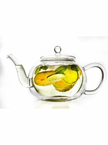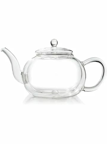 Die doppelwandige Creano Glas-Tekanne 1.2l ist eine Rarität! Das hohe Fassungsvermögen von 1.2l bei einer Doppelwandglaskanne ist eine Besonderheit, da diese nur von sehr wenigen Bläsern weltweit hergestellt werden kann. Aufgrunddessen sind die jährlich angebotenen Mengen dieser besondenderen Kannen sehr gering. Jede Teekanne ist mundgeblasen und daher ein Unikat! Dank ihrer Doppelwandigkeit isolieren sie sehr gut halten den Tee lange warm. Sie sind mit einem hochwertigen Edelstahlfilter und Glasdeckel ausgestattet und sind absolut tropffrei.Die Fertigung erfolgt ausschließlich auf Basis hochwertiger Materialen: die Teekanne mit Glasdeckel wird aus hitzebeständigem Borosilikatglas erzeugt. Der herausnehmbare Filter besteht aus hochwertigem Edelstahl. Auch ohne Filtereinsatz. Ein Handgriff und der Edelstahlfilter ist ausgetauscht! Tees aller Art, ob loser Tee, ErblühTee oder Teebeutel, sind somit auf einfache Weise in der GlasTeekanne delikat zuzubereiten.Für den Gebrauch in der Spülmaschine und Mikrowelle geeignet.Inhalt 1 GlasTeekanne 1,2l mit Edelstahlfilter, Glasdeckel
