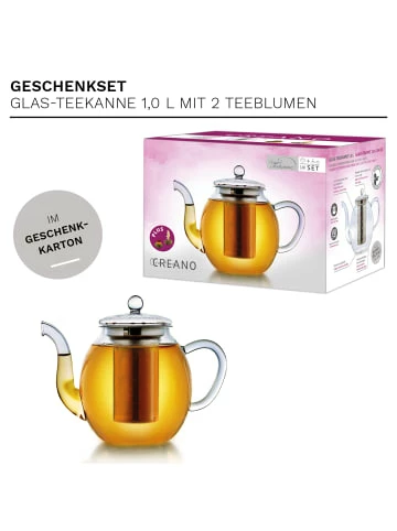 Aktion ❤️ Kaffee- & Teegeschirr Creano Teekannen-Geschenkset 1x Teekanne 1.0l Inkl. 2 Teeblumen Grüner + Weißer Tee Günstig Kaufen 🎉