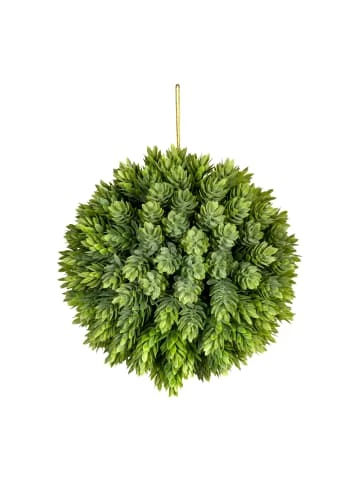 Immergrüner Blickfang für Deine Wohnräume – Langlebig, pflegeleicht und vielseitig verwendbar – Liebevoll der Natur nachempfunden & hochwertig verarbeitetFormschöner Eyecatcher! Diese besonders schön und detailreich gearbeitete Hopfen-Kugel besticht durch ihre zeitlose Eleganz. Liebevoll von der Natur inspiriert und von hochwertiger Anmutung wird dieser Blickfang aus Kunststoff zu einem Highlight in Deinem Ambiente. Langlebig, pflegeleicht und variantenreich einsetzbar zum Hängen oder Legen wird er Dich mit Sicherheit begeistern. Besonders schön wirkt eine Gruppierung aus mehreren Kugeln, auch in unterschiedlichen Größen. Die Hopfen-Kugel hat einen Durchmesser von ca. 18 cm, und besteht aus Kunststoff, Aufhängung inklusive.