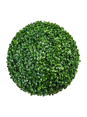 Immergrüner Blickfang für Deine Wohnräume – Langlebig, pflegeleicht und vielseitig verwendbar – Liebevoll der Natur nachempfunden & hochwertig verarbeitetFormschöner Eyecatcher! Diese besonders schön und detailreich gearbeitete Buchsbaum-Kugel besticht durch ihre zeitlose Eleganz. Sie ist außerdem länger UV-beständig. UV-Strahlen können bei starker Sonneneinstrahlung zu Verfärbungen bei Kunstpflanzen führen. UV-beständige Kunstpflanzen sind mit einem zusätzlichen UV-Schutz versehen, so dass diese künstliche Pflanzenkugel besser für sonnige Standorte geeignet ist. Liebevoll von der Natur inspiriert und von hochwertiger Anmutung wird dieser Blickfang aus Kunststoff zu einem Highlight in Deinem Ambiente. Langlebig, pflegeleicht und variantenreich einsetzbar wird er Dich mit Sicherheit begeistern. Besonders schön wirkt eine Gruppierung aus mehreren Kugeln, auch in unterschiedlichen Größen. Die Buchsbaum-Kugel hat einen Durchmesser von ca. 33 cm und besteht aus Kunststoff.