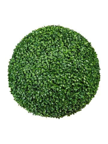 Immergrüner Blickfang für Deine Wohnräume – Langlebig, pflegeleicht und vielseitig verwendbar – Liebevoll der Natur nachempfunden & hochwertig verarbeitetFormschöner Eyecatcher! Diese besonders schön und detailreich gearbeitete Buchsbaum-Kugel besticht durch ihre zeitlose Eleganz. Sie ist außerdem länger UV-beständig. UV-Strahlen können bei starker Sonneneinstrahlung zu Verfärbungen bei Kunstpflanzen führen. UV-beständige Kunstpflanzen sind mit einem zusätzlichen UV-Schutz versehen, so dass diese künstliche Pflanzenkugel besser für sonnige Standorte geeignet ist. Liebevoll von der Natur inspiriert und von hochwertiger Anmutung wird dieser Blickfang aus Kunststoff zu einem Highlight in Deinem Ambiente. Langlebig, pflegeleicht und variantenreich einsetzbar wird er Dich mit Sicherheit begeistern. Besonders schön wirkt eine Gruppierung aus mehreren Kugeln, auch in unterschiedlichen Größen. Die Buchsbaum-Kugel hat einen Durchmesser von ca. 48 cm und besteht aus Kunststoff.