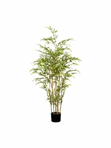 Immergrüner Blickfang für Deine Wohnräume – Langlebig, pflegeleicht und vielseitig verwendbar – Liebevoll der Natur nachempfunden & hochwertig verarbeitetLänger UV-beständig präsentiert sich dieser prächtige Bambus. UV-Strahlen können bei starker Sonneneinstrahlung zu Verfärbungen bei Kunstpflanzen führen. UV-beständige Kunstpflanzen sind mit einem zusätzlichen UV-Schutz versehen, so dass die künstliche Pflanze besser für sonnige Standorte geeignet ist. Liebevoll der Natur nachempfunden ist diese Pflanzen-Nachbildung nur auf den zweiten Blick vom Original zu unterscheiden. Die feingearbeiteten Blätter und Zweige des Bambus werden mit natürlichen Bambusstäben kombiniert. Ob in Deinem Eingangsbereich oder in Deinem Wohnzimmer – dieser Bambus ist als Akzent vielseitig einsetzbar und wird Dich und Deine Besucher stets aufs Neue begeistern. Die Dekopflanze kann durch einen zu Deinem Ambiente passenden Übertopf ergänzt werden. Die Gesamthöhe der Pflanze beträgt ca. 130 cm. Die Deko-Pflanze besteht aus Kunststoff und Naturstamm. Der Kunststofftopf hat die Maße Ø ca. 15 cm, Höhe ca. 12,5 cm.