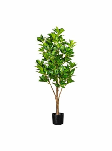 Immergrüner Blickfang für Deine Wohnräume – Langlebig, pflegeleicht und vielseitig verwendbar – Liebevoll der Natur nachempfunden & hochwertig verarbeitetDekopflanze Kirschlorbeer als trendiger Blickfang! An dieser Pflanzen-Nachbildung wirst Du dich viele Jahre erfreuen. Die hochwertige und naturgetreue Anmutung sowie die vielseitigen Einsatzmöglichkeiten machen diesen Eyecatcher zu einem langlebigen Liebling in Deinem Zuhause: ob in Deinem Arbeitszimmer, Eingangsbereich oder Wohnzimmer. Die Pflanze präsentiert sich im einfachen Kunststofftopf, sie kann so durch einen zu Deinem Ambiente passenden Übertopf ergänzt werden. Die Kunstpflanze besteht aus Kunststoff, Höhe ca. 120 cm. Die Maße des Topfes betragen Ø ca. 15 cm, Höhe ca. 12,5 cm.