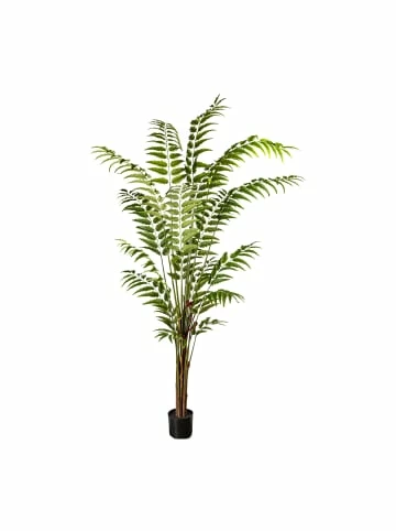 Immergrüner Blickfang für Deine Wohnräume – Langlebig, pflegeleicht und vielseitig verwendbar – Liebevoll der Natur nachempfunden & hochwertig verarbeitetFaszinierend-schöne Lederfarnpflanze! Diese besonders schön und detailreich gearbeitete Lederfarn-Nachbildung besticht durch ihre zeitlose Eleganz. Liebevoll von der Natur inspiriert und hochwertig gearbeitet wird dieser immergrüne Blickfang aus Kunststoff zu einem trendigen Highlight in Deinem Ambiente. Langlebig, pflegeleicht und variantenreich einsetzbar wird die Grünpflanze mit Sicherheit vielfach begeistern. Die Dekopflanze kann durch einen zu Deinem Ambiente passenden Übertopf ergänzt werden. Die Deko-Pflanze ist ca. 240 cm hoch und besteht aus Kunststoff. Der Kunststofftopf hat die Maße Ø ca. 19 cm, Höhe ca. 17 cm. Die Pflanze wird in Teilen geliefert und lässt sich sehr einfach zusammen stecken.