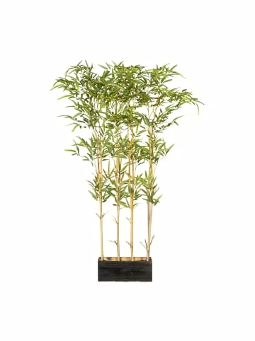 Immergrüner Blickfang für Deine Wohnräume – Langlebig, pflegeleicht und vielseitig verwendbar – Liebevoll der Natur nachempfunden & hochwertig verarbeitetLänger UV-beständig präsentiert sich dieser prächtige Raumteiler aus Bambus. UV-Strahlen können bei starker Sonneneinstrahlung zu Verfärbungen bei Kunstpflanzen führen. UV-beständige Kunstpflanzen sind mit einem zusätzlichen UV-Schutz versehen, so dass die künstliche Pflanze besser für sonnige Standorte geeignet ist. Liebevoll der Natur nachempfunden ist diese Pflanzen-Nachbildung nur auf den zweiten Blick vom Original zu unterscheiden. Die feingearbeiteten Blätter und Zweige des Bambus-Raumteilers werden mit natürlichen Bambusstäben kombiniert. Die Pflanze präsentiert sich in einem dekorativen Holzkasten. Ob in Deinem Eingangsbereich oder in Deinem Wohnzimmer – dieser Bambus ist als Akzent vielseitig einsetzbar und wird Dich und Deine Besucher stets aufs Neue begeistern. Die Gesamthöhe des Raumteilers mit Bambusstäben beträgt ca. 130 cm. Die Deko-Pflanze besteht aus Kunststoff und Naturstamm. Der Holz-Kasten hat die Maße BxTxH ca. 32×12,5×12 cm.