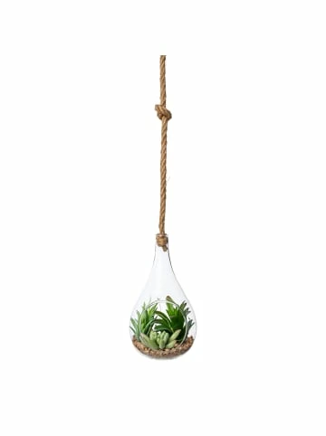Strahlendes Highlight für Deine Wohnräume – Langlebig, pflegeleicht und vielseitig verwendbar – Liebevoll der Natur nachempfunden & hochwertig verarbeitetEin trendiger Blickfang – Deko-Pflanzen mit LED-Beleuchtung! An diesen Sukkulenten im Glas wirst Du Dich mit Sicherheit viele Jahre erfreuen. Liebevoll von der Natur inspiriert, fein im edlen Glas arrangiert und mit zeitgemäßer LEB-Beleuchtung in Szene gesetzt, erfreuen diese immergrünen Lieblinge jeden Betrachter. Egal ob hängend in Fenstern oder stehend beispielsweise auf einem Sideboard gruppiert, dieses Ensemble wird variantenreich zum eleganten Eyecatcher. Auch eine schöne Geschenkidee! Die Beleuchtung wird mit einem Schalter an der Unterseite und einer Knopfzelle CR2032 betrieben, im Lieferumfang enthalten. Die Glaskugel hat einen Durchmesser von 12 cm und eine Höhe von 22 cm, sie ist zum Stellen und Hängen geeignet. Die Sukkulenten bestehen aus Kunststoff.